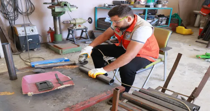 Belediye Başkanı Mehmet Canpolat'ın talimatlarıyla çalışmalarını sürdüren Kırsal Hizmetler Müdürlüğü, park ve yeşil alanları modern hale getirmek amacıyla üretim faaliyetlerini hızlandırdı. Metal-İş, Boyama ve Ahşap Atölyelerinde seri üretim yapan ekipler, kaynak ve boyama işlemleri tamamlanan ürünleri monte ederek parklara kazandırıyor.