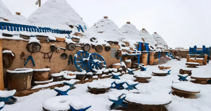 Şanlıurfa'nın tarihi ilçesi Harran'da, 29 Aralık 2025 Pazartesi günü etkili olan kar yağışı, ilçeyi adeta bir kış masalına çevirdi. Gün boyu aralıklarla devam eden yağış, özellikle tarihi ve manevi değeri yüksek noktalarda kartpostallık manzaralar oluşturdu.