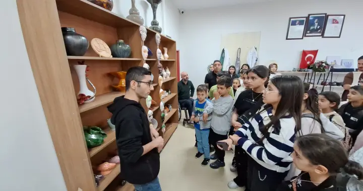 Engelliler Koordinasyon ve Yaşam Merkezindeki engelli bireylerle buluşan öğrenciler, burada atölye çalışmalarına katıldı. Engelli bireylerin atölye çalışmalarında hazırladıkları el işi ürünleri inceleyen öğrenciler, merkezdeki çalışmalara katıldı.