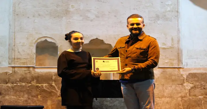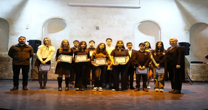 Programda Şanlıurfa Büyükşehir Belediyesi Genel Sekreteri Mithat Can Kutluca tarafından sahne alan öğrencilere teşekkür belgeleri takdim edildi.