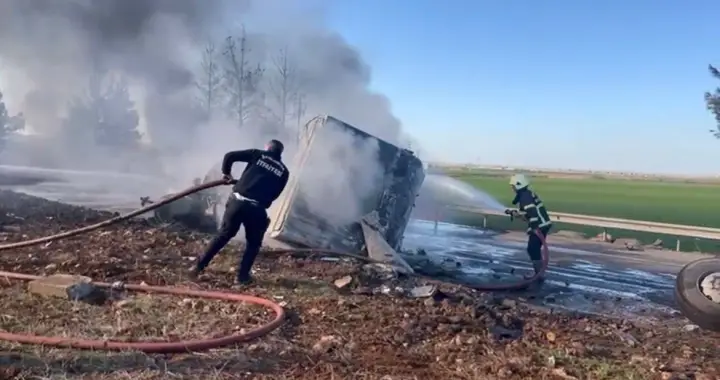 Viranşehir–Şanlıurfa Karayolunda Yakıt Yüklü Tır Devrildi: Yangın Çıktı