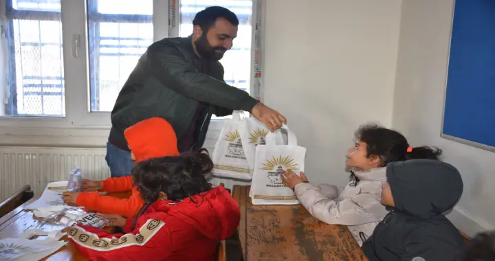 Belediye ekipleri de içerisinde kolonya, şampuan, sıvı sabun ve ıslak mendilin yer aldığı hijyen setlerini dağıttı.