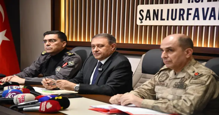 Şanlıurfa Valisi Hasan Şıldak, İl Emniyet Müdürü Atilla Aksoy ve İl Jandarma Komutanı Tuğgeneral Ali Naci Aldemir ile birlikte düzenlediği basın toplantısında, 2026 yılının ilk üç ayına ilişkin asayiş verilerini kamuoyuyla paylaştı.